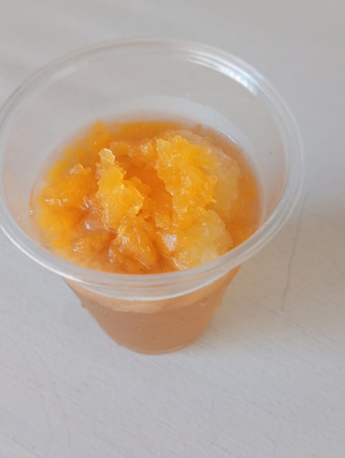 伊豆の国でみつけた赤&黄色、2種の小玉すいかを冷凍してトッピング。